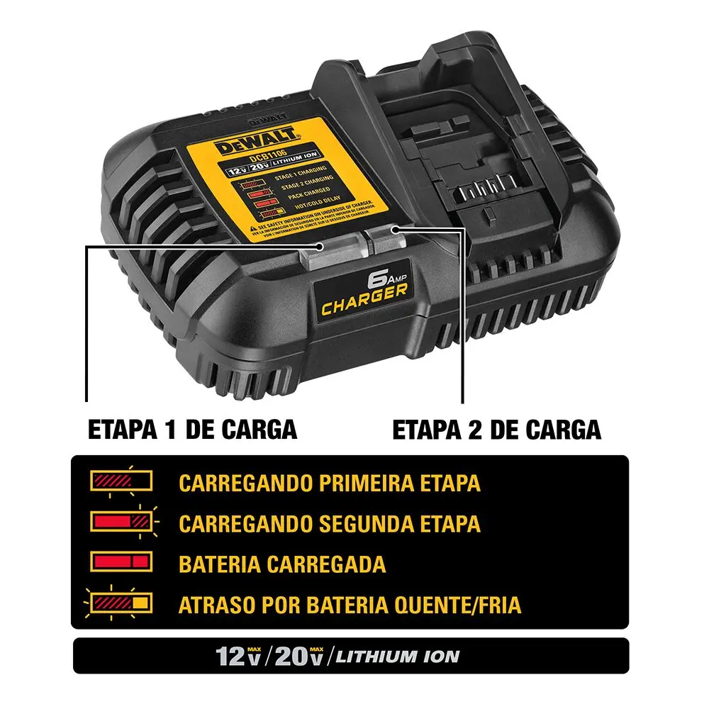 110v, Carregador Rápido de Baterias 6Ah 20V MAX* Dewalt DCB1106