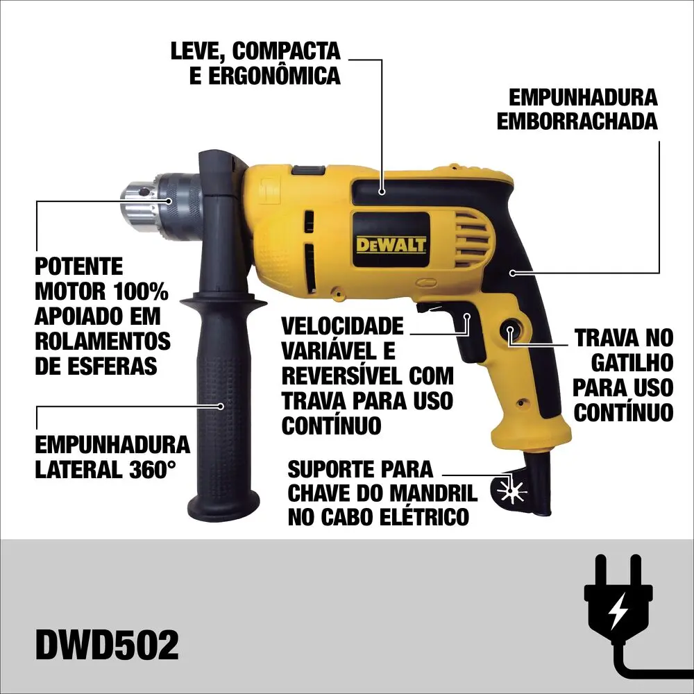 110v, Furadeira de Impacto 1/2" Dewalt Com Kit 5 Brocas DWD502SW