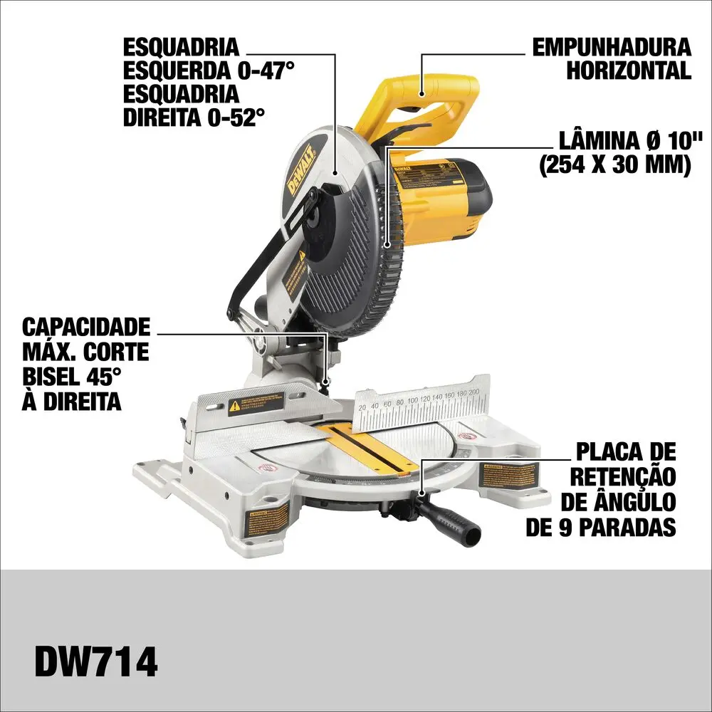 220v, Serra de Meia Esquadria 10" (254mm) Dewalt 1650w DW714