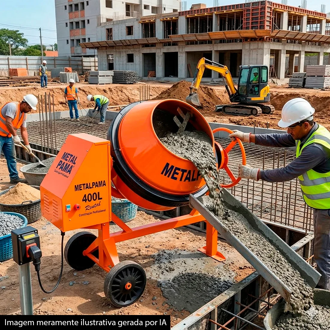 Esta betoneira Metalpama 400L é recomendada para preparo de concreto e argamassa em construções residenciais, comerciais, reformas estruturais, ampliações, obras de médio e grande porte e operações de locação profissional. Atende especialmente empresas locadoras, empreiteiros e construtoras que buscam uma betoneira para construção civil com capacidade elevada de mistura, robustez estrutural e alimentação 220v.