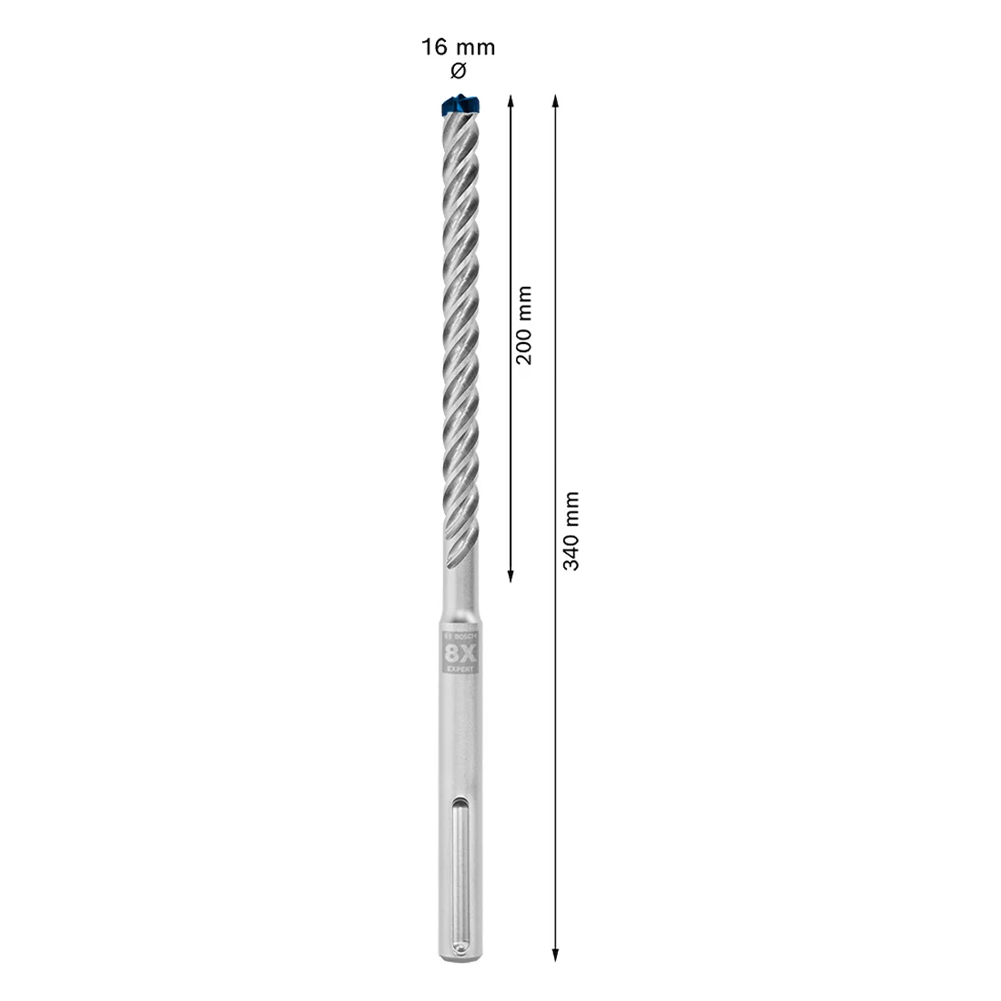 O design 8X reforçado proporciona maior resistência à flexão e desgaste, essencial para operações em concreto armado, blocos estruturais e alvenaria densa. O comprimento de 340 mm permite alcançar profundidades técnicas sem comprometer a estabilidade do furo.