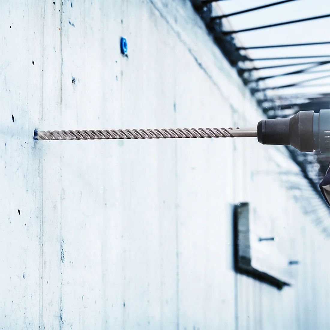 O comprimento maior facilita perfurações profundas para instalação de tubulações, buchas e ancoragens técnicas.