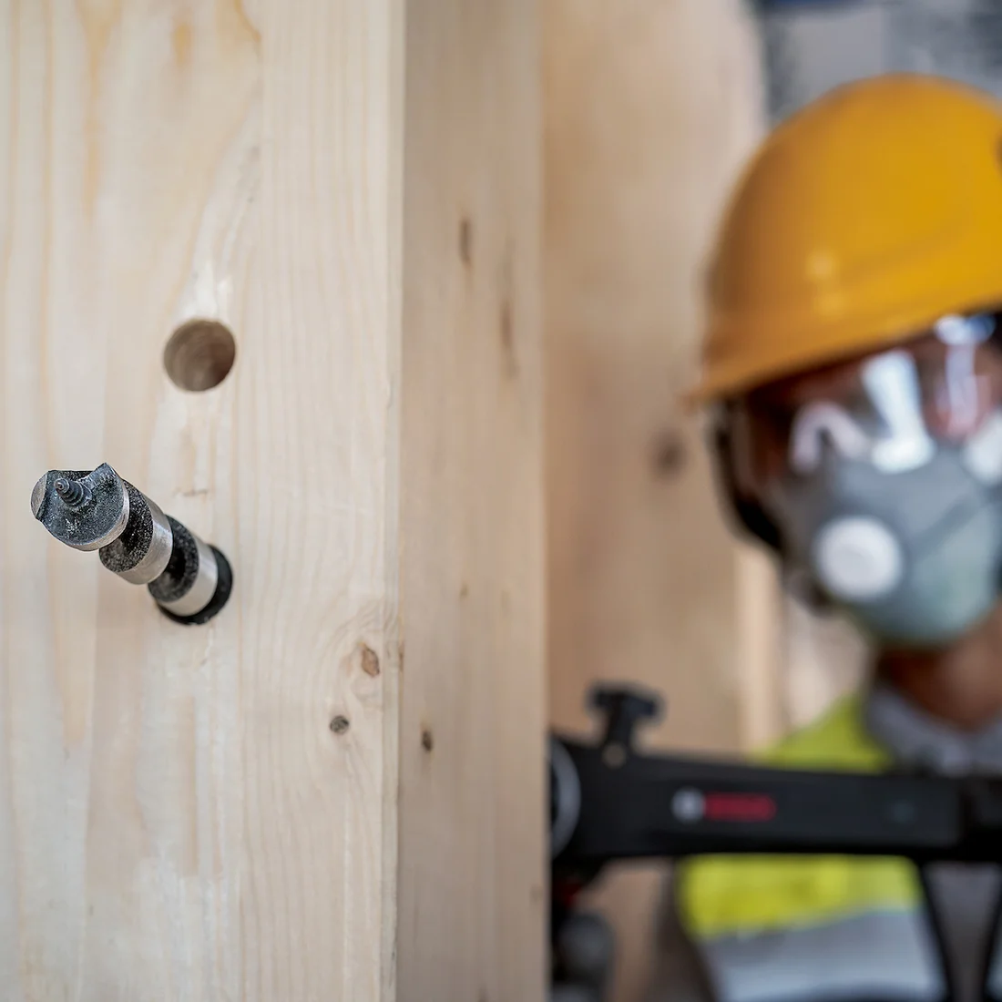 Exatamente. A ponta auto-perfurante funciona como um parafuso, guiando a broca para dentro da madeira. O operador precisa apenas sustentar a ferramenta na posição correta, pois a broca realiza o avanço de forma automática.