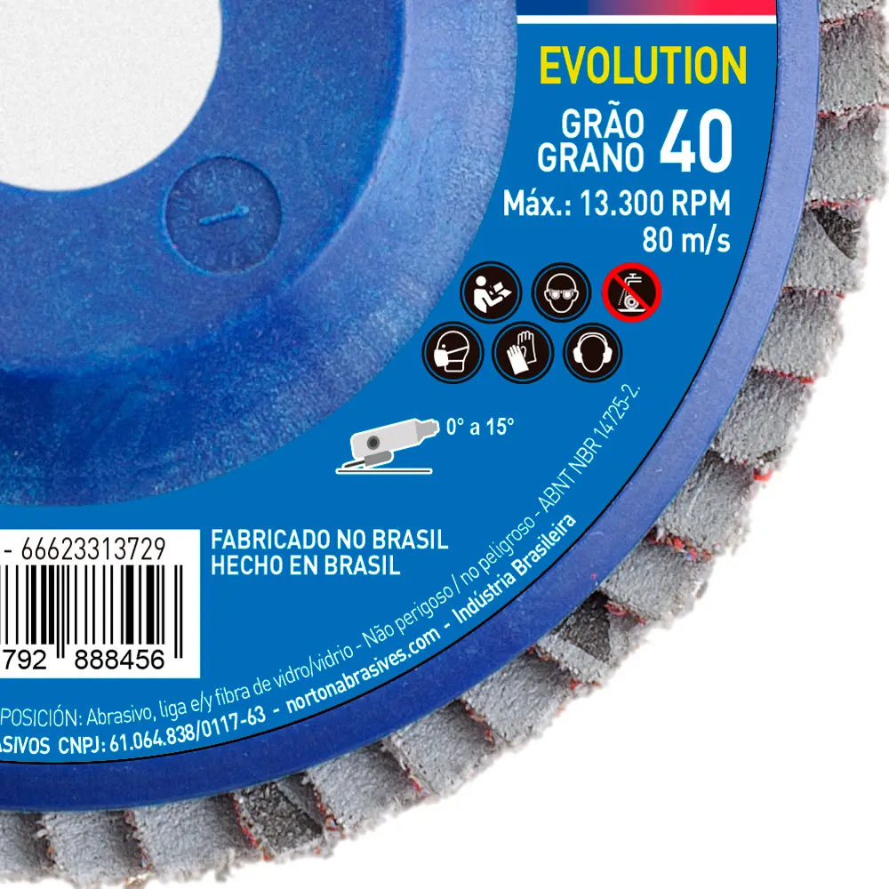 Disco Flap de Plástico Evolution R822 115 x 22mm Grão 40 Norton