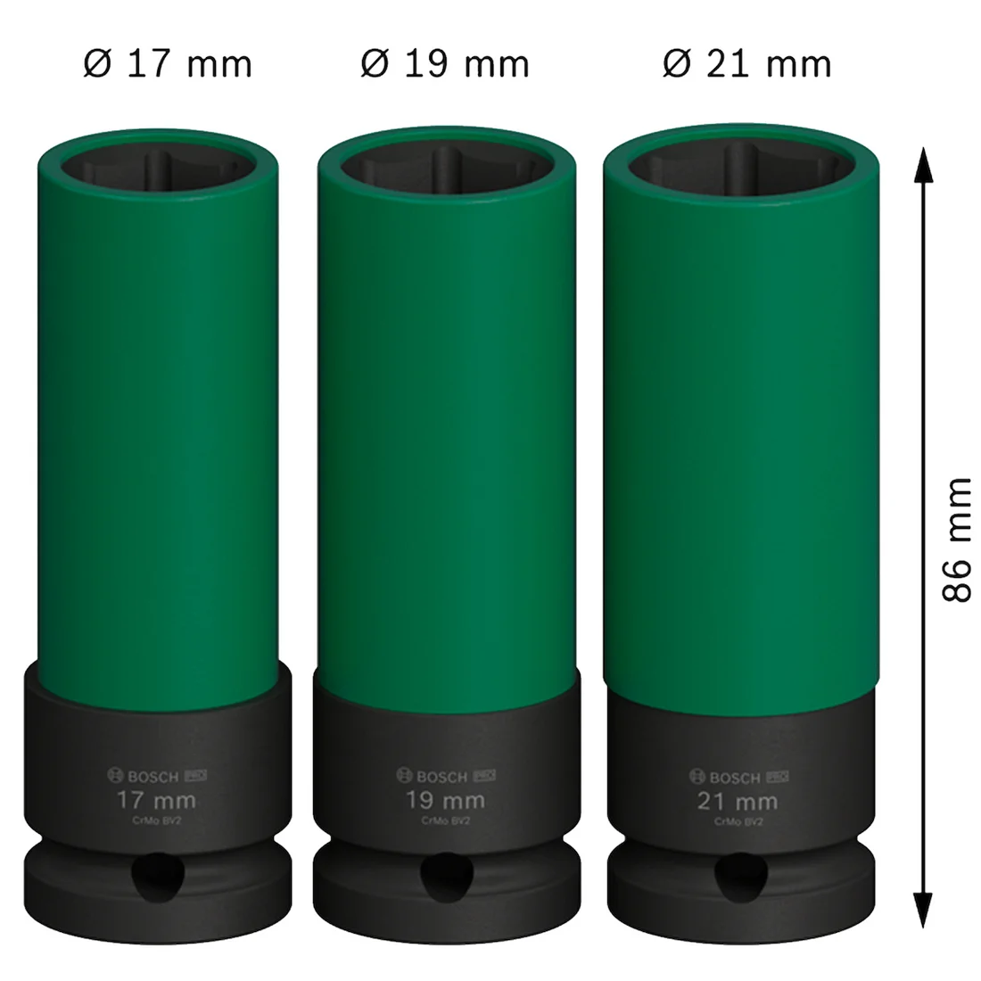 Jogo de Soquetes de Impacto Longos 1/2" Com 3 Peças Bosch 2608003033